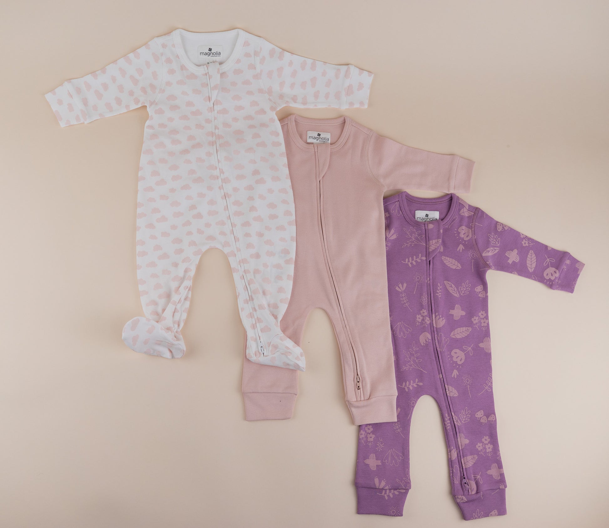 This thoughtfully curated set features a cloud-patterned sleep n play with cozy built-in feet, paired with two footless styles in cheerful floral and soft pink. Perfect for all seasons thanks to our breathable organic cotton fabric, each piece is crafted for gentle comfort and easy dressing. Beautifully presented and ready to gift, it's an ideal choice for baby showers, holidays, or welcoming a new arrival.