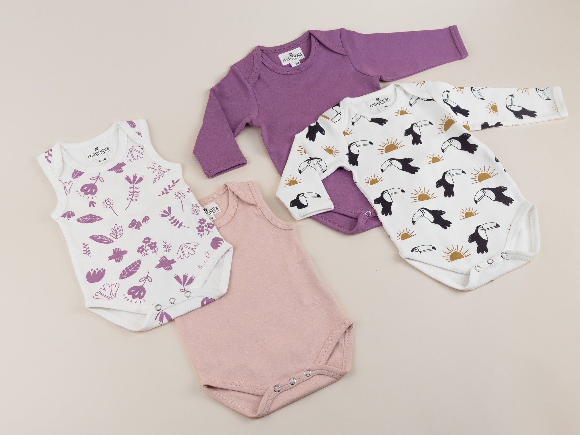 1 x patterned long sleeve bodysuit - Toucan Sunrise